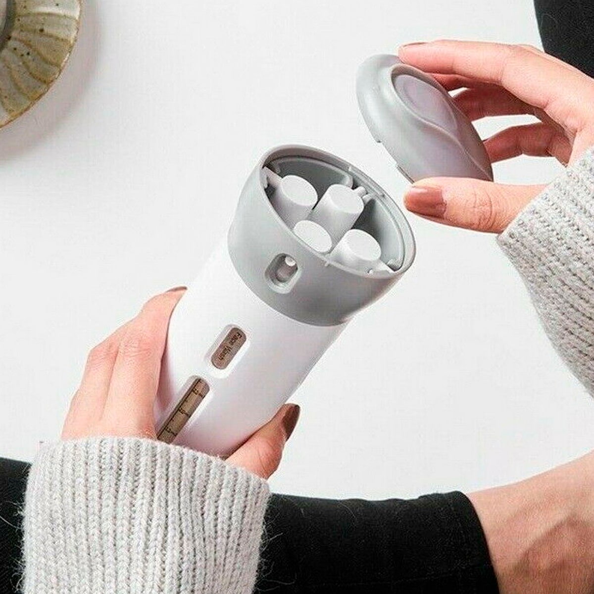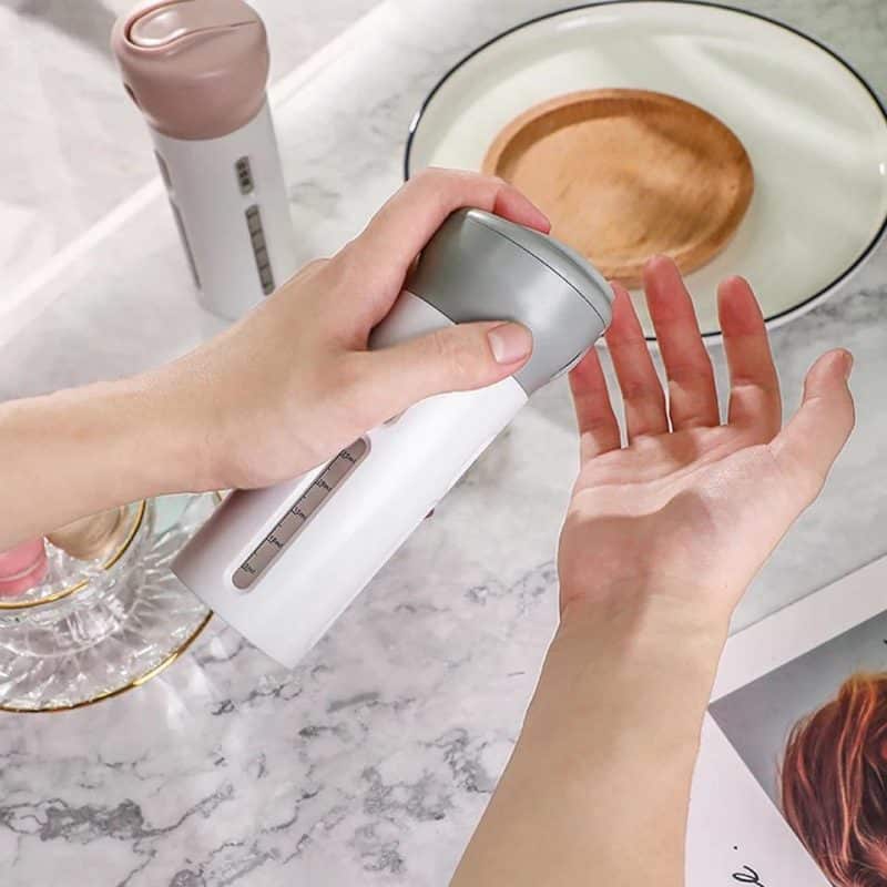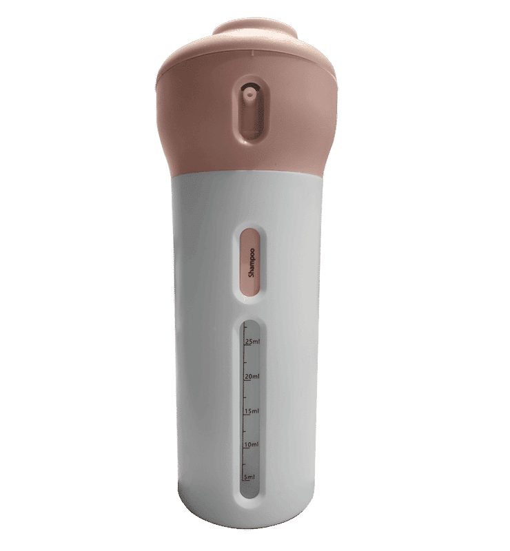 Dispensador de líquidos portátil 4 en 1 que te permitirá liberar espacio en tu maleta o bolso ya que te ayudará a evitar cargar con tantos frascos de viaje.