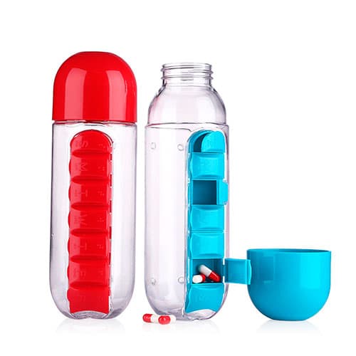 Termo con pastillero 3 en 1 incorporado que facilita transportar tus medicamentos en un solo lugar junto con tu bebida favorita.