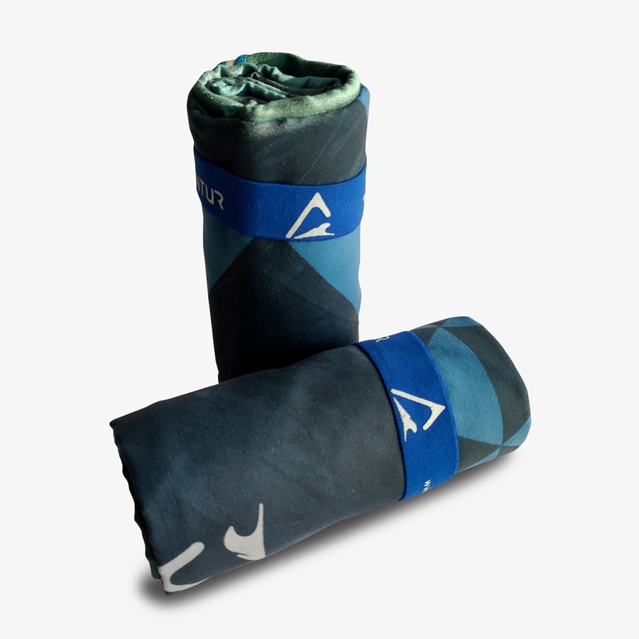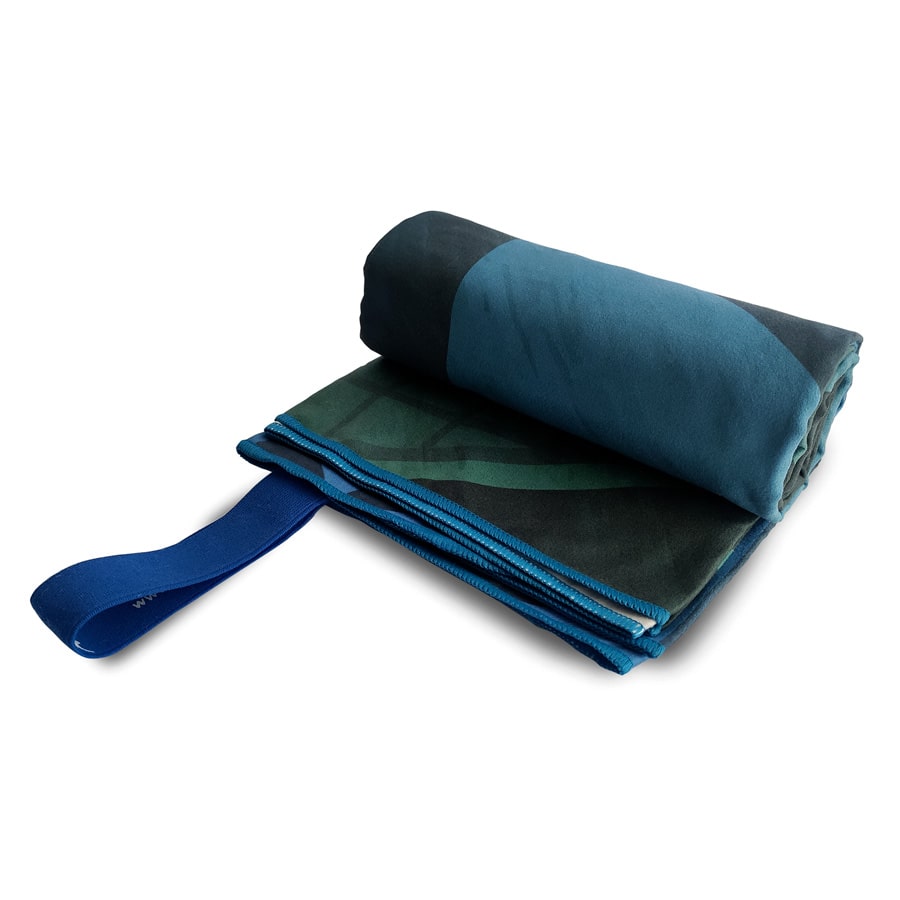 El elástico de la Toalla de microfibra te ayudará a colgarla en más sitios para agilizar aún más su secado, así como te ayudará a doblarla para que la puedas guardar más fácil dentro del forro o dentro de tu maleta.